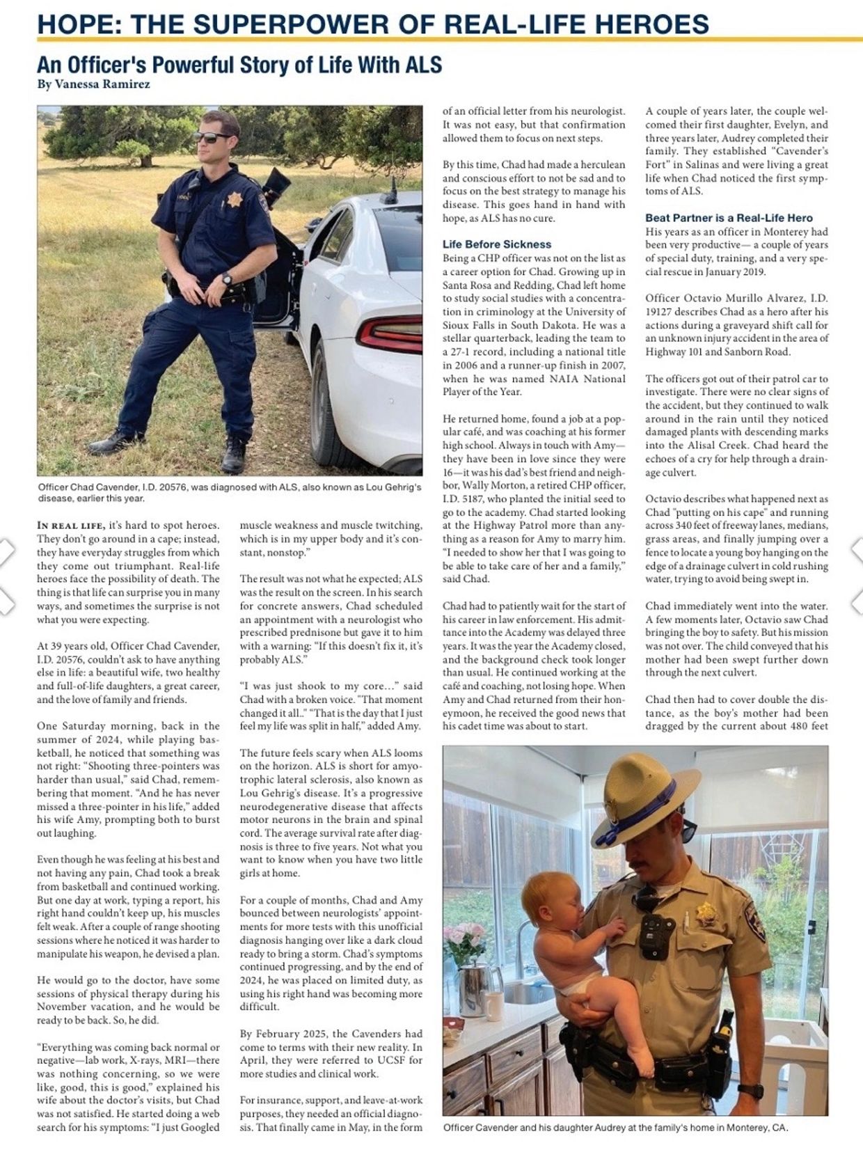 Hope, the Super Power of Real-Life Heroes: CHP outlined Officer Cavender's impressive career and described his current struggles.